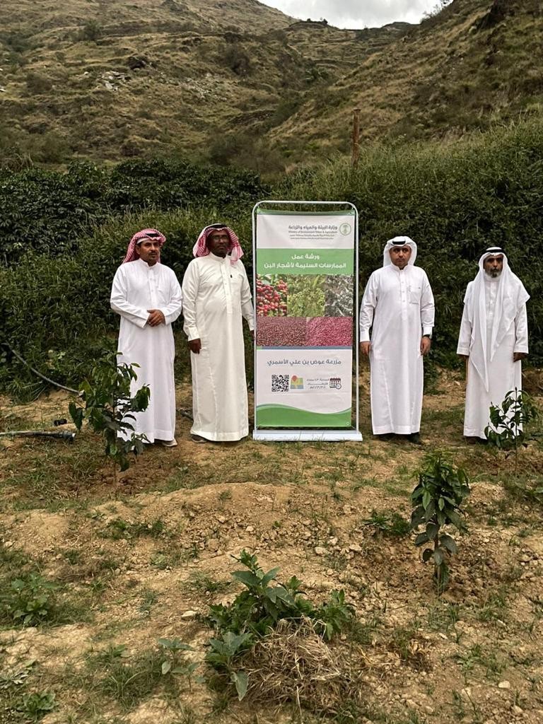 ورشة عمل:"الممارسات السليمة لاشجار البن", بمزرعة المواطن عوض بن علي الاسمري والتي تم فيها مناقشة افضل الممارسات لرعاية اشجار البن والاهتمام بها ورعايتها قدمها المهندس إبراهيم محمد الفاهمي وتمت الاجابة على استفسارات المزارعين والاستماع لابرز المعوقات التي تواجههم واعطاء الحلول المناسبة للتغلب عليها.