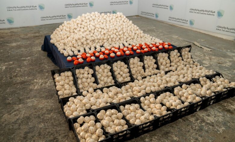 احباط محاولة تهريب أكثر من 2 مليون حبة كبتاجون مُخبأة في إرسالية “طماطم ورمان”