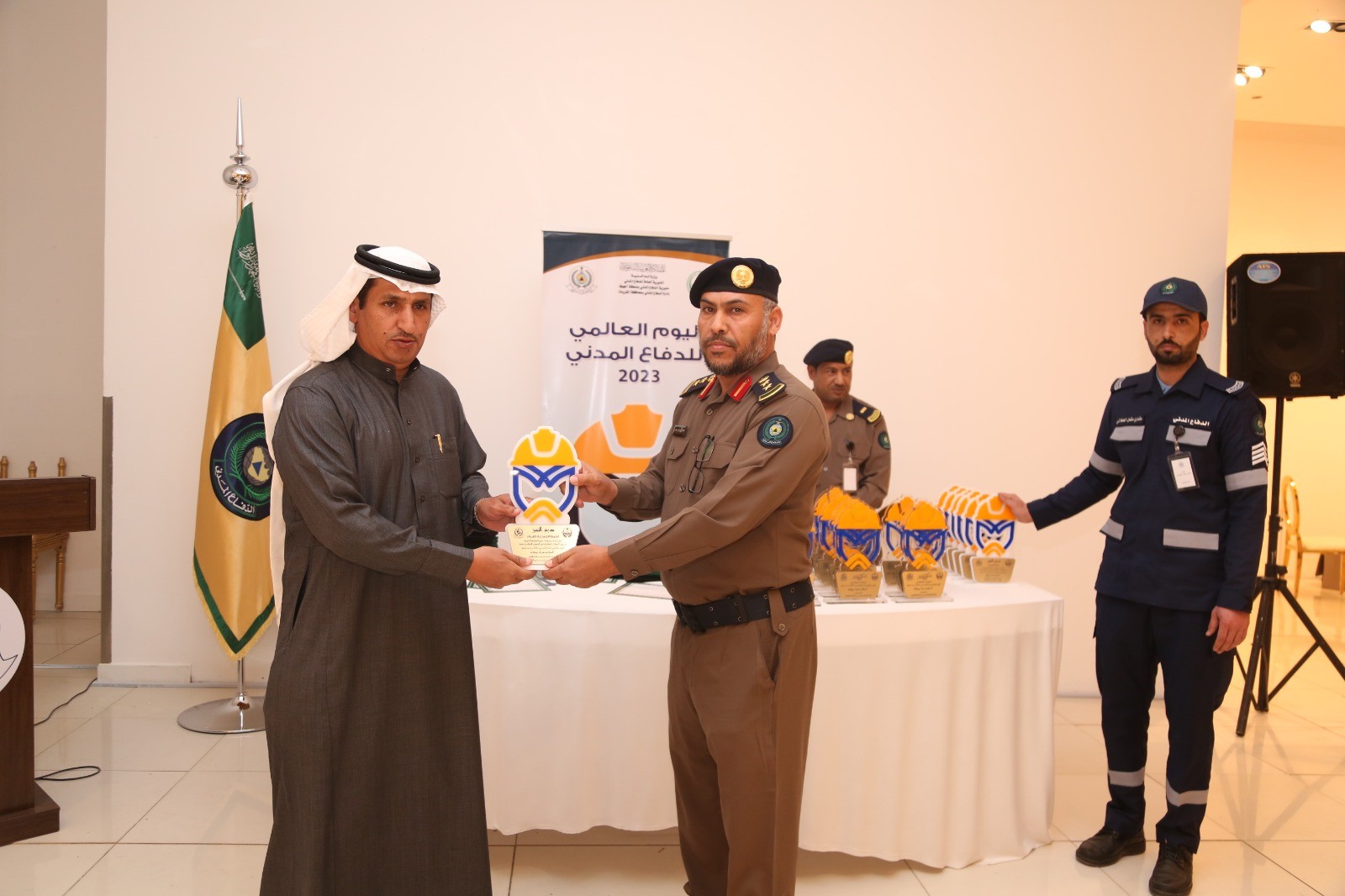 شارك مركز التنمية الاجتماعية بالقريات بمعرض الدفاع المدني تحت عنوان ( السلامه هدف ووقايه )والذي افتتحه سعادة محافظ القريات يوم الاربعاء الموافق ١٤٤٤/٨/٩هـ بمشاركة عدد من الجهات وإشتملت مشاركة المركز بركن تعريفي عن دوره بالمجتمع ودوره بتوعية الناس بنشر ثقافة ادارة الازمات والتوعيه بمخاطرها بطريقه اسرع من خلال برنامج المساهمة في حالات الطوارىء والكوارث وتن تكريم المركز بدرع التميز للمشاركة بالاحتفال.
