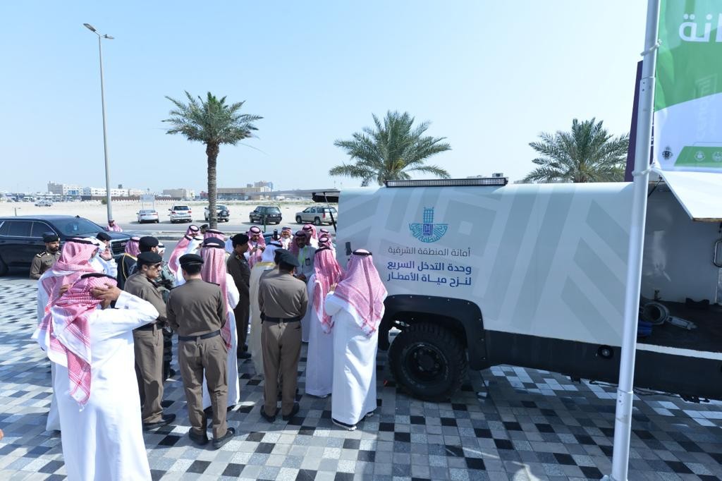 واطلع وكيل إمارة المنطقة الشرقية خلال جولته على الأركان، على أهم المعدات والآليات المستخدمة من قبل أمانة الشرقية التي تستخدمها لسلامة الطرق ومعالجتها، أبرزها وحدة التدخل السريع لنزح مياه الأمطار، التي تأتي ضمن منظومة معالجة مياه الأمطار التي طورتها للتدخل السريع وتنقلها للمواقع المستهدف معالجتها في مدة زمنيه أقل لنزح مياه الأمطار، وتركز بشكل أكبر على سرعة الاستجابة، إضافة إلى معدة المسح الرقمي للطرق، وهي مُعدّة التصوير الرقمي لحرم الطريق وقياس الوعورة “، والتي تقوم بأعمال المسح الرقمي لعيوب الطريق عن طريق استخدام وحدة الليزر، وهي مزوّدة بنظام الأشعة تحت الحمراء؛ لتصوير عيوب الطريق ومعالجتها .