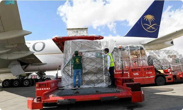 ويأتي ذلك ضمن الجسر الجوي الإغاثي السعودي الذي يسيّره مركز الملك سلمان للإغاثة والأعمال الإنسانية لمساعدة متضرري الزلزال في سوريا وتركيا، إنفاذاً لتوجيهات خادم الحرمين الشريفين الملك سلمان بن عبدالعزيز آل سعود وصاحب السمو الملكي الأمير محمد بن سلمان بن عبدالعزيز ولي العهد رئيس مجلس الوزراء -حفظهما الله- وتجسيدا للدور الإنساني النبيل الذي تقوم به المملكة العربية السعودية.