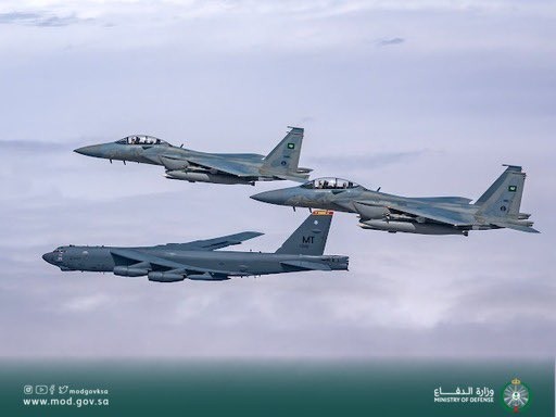 رافقت طائرتان للقوات الجوية الملكية السعودية من نوع «ف -15 إس أي» قاذفة القنابل الإستراتيجية الأمريكية «بي-52» التابعة للقوات الجوية الأمريكية أثناء عبورها أجواء المملكة.