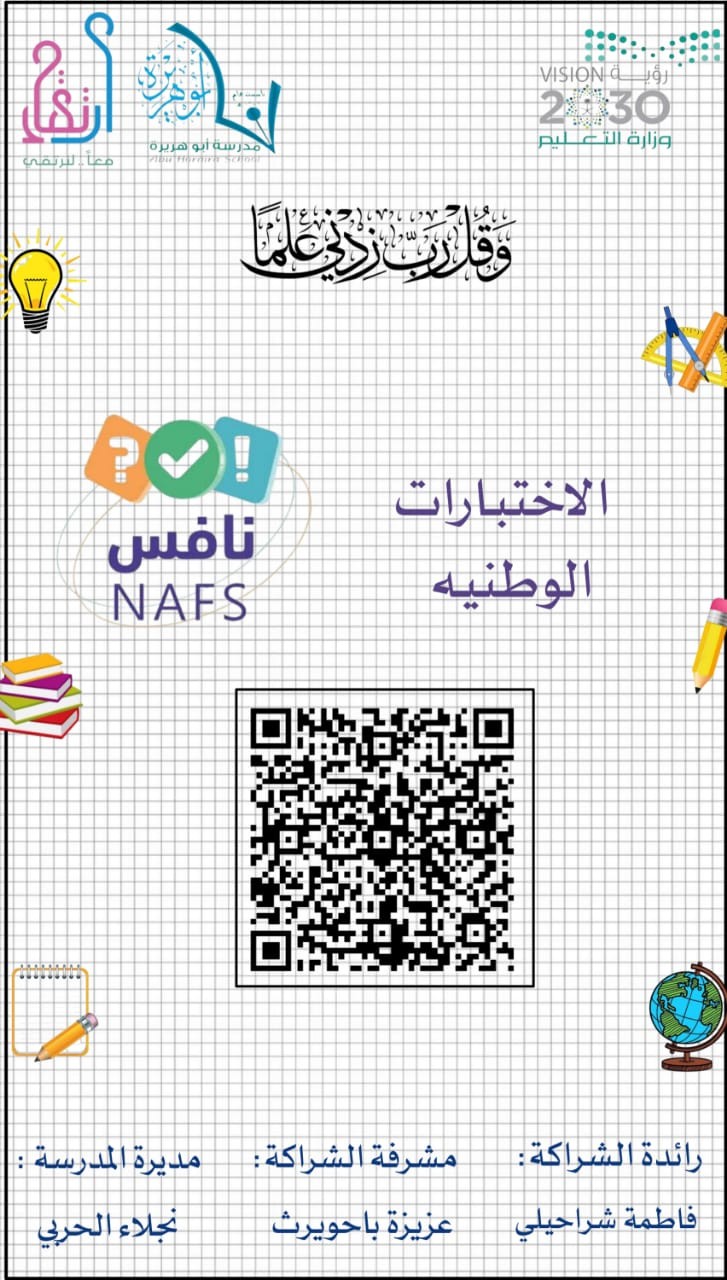 نفذت مدرسة أبو هريرة _ رضي الله عنه _ التابعة لمكتب تعليم شمال مكة بالإدارة العامة للتعليم بمنطقة مكة المكرمة يوم الأحد الموافق 17 / 10 / 1444هـ، برنامجاً تعريفياً بعنوان الاختبارات الوطنية (نافس) عبر قروب الواتس من قبل رائدة الشراكة المجتمعية فاطمة شراحيلي ومساندة مسؤولة الإذاعة سامية الحازمي وإشراف مديرة المدرسة.