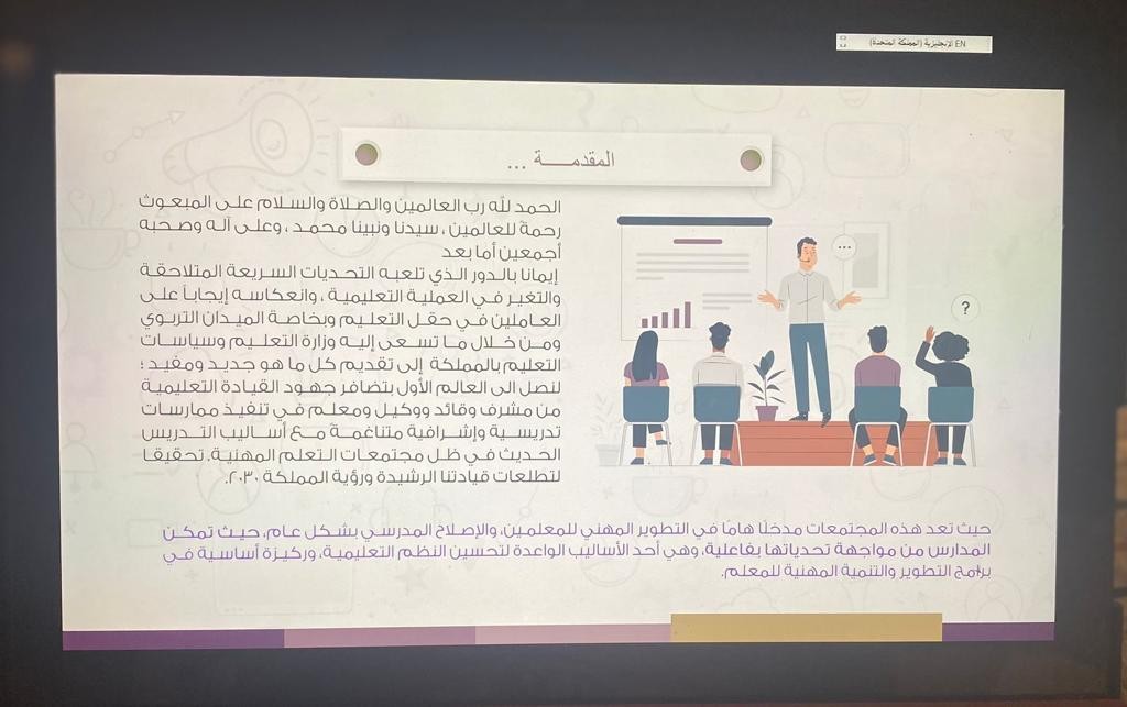 نفذت إدارة تعليم صبيا مجتمع تعلم مهني "بيداغوجيا اللعب"بإشراف الإدارة العامة للإشراف التربوي ومشرفة العموم بوزارة التعليم على مستوى إدارة التعليم في مناطق ومحافظات المملكة من خلال استثمار أدوات الشاشة التفاعلية ويهدف هذا المجتمع إلى تعزيز القيم والمهارات الأساسية للطلبة والطالبات وتجويد الممارسات التدريسية لمعلمات العلوم والرياضيات في المرحلة الابتدائية والمتوسطة وتطوير المهارات الرقمية للطلبة حيث نفذ هذا المجتمع في مجمع تحفيظ صبيا بإشراف ومتابعة مشرفة العلوم أحمدية حسن بمكتب تعليم صبيا والدكتوره شريفة موكلي منسقة مجتمعات التعلم المهنية بالمكتب وتنفيذ معلمات العلوم والرياضيات أريج زكري وإقبال محمد وسميرة بنيان وإنعام عذيق ونجلاء سليمان.