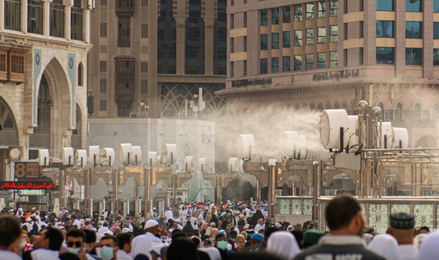 وفرت الرئاسة العامة لشؤون المسجد الحرام والمسجد النبوي، ممثلة في وكالة الشؤون الفنية والتشغيلية والصيانة 242 مروحة رذاذ، و 216 عمود ضباب مائي لتلطيف أجواء ساحات المسجد الحرام باستخدام تكنولوجيا (تبريد الهواء بالرذاذ) من خلال امتصاص الطاقة الحرارية من الهواء الخارجي وخفض درجة حرارته لدرجة تقارب (6) درجات مئوية.
