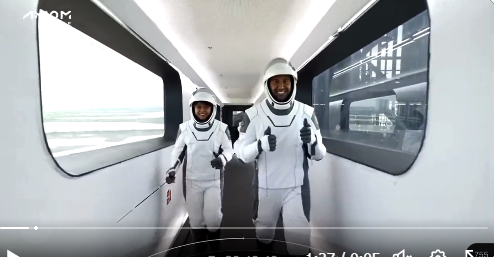 ونشرت وكالة الأنباء السعودية “واس” فيديو يرصد لحظة وصول علي القرني وريانة برناوي إلى منصة إطلاق المركبة “دراغون”.