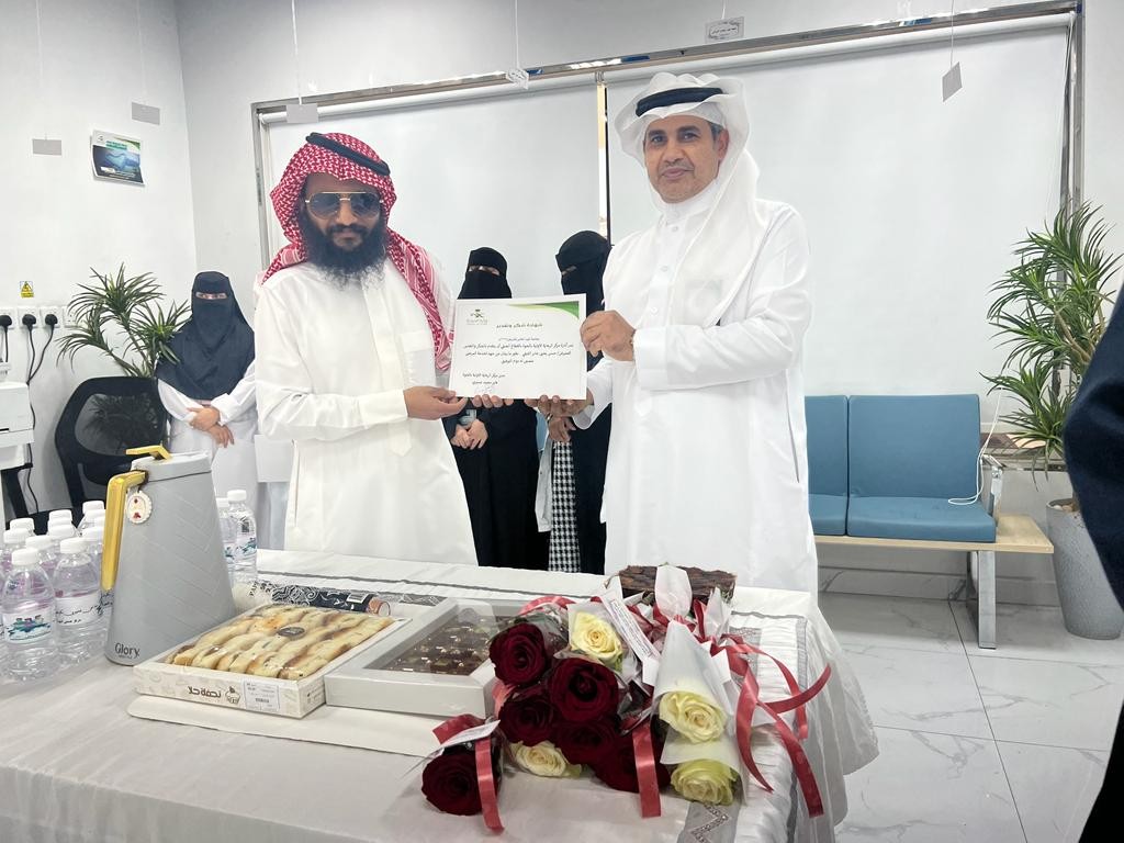 وفي نهاية الحفل تم تقديم شهادات الشكر للمحتفى بهم والمساندين لعمل التمريض نظير ما يقدمون به للرقي بخدمة المرضى بالمركز مع باقات من الورد، وكلمات الثناء والشكر لملائكة الرحمة. لكلا من مدير المركز / فايز محمد عسيري ، والممرض حسن يحيى الفيفي ، ومحمد سليمان الفيفي ، نبيهة جابر غزواني ، جمعة يحيى غزواني .