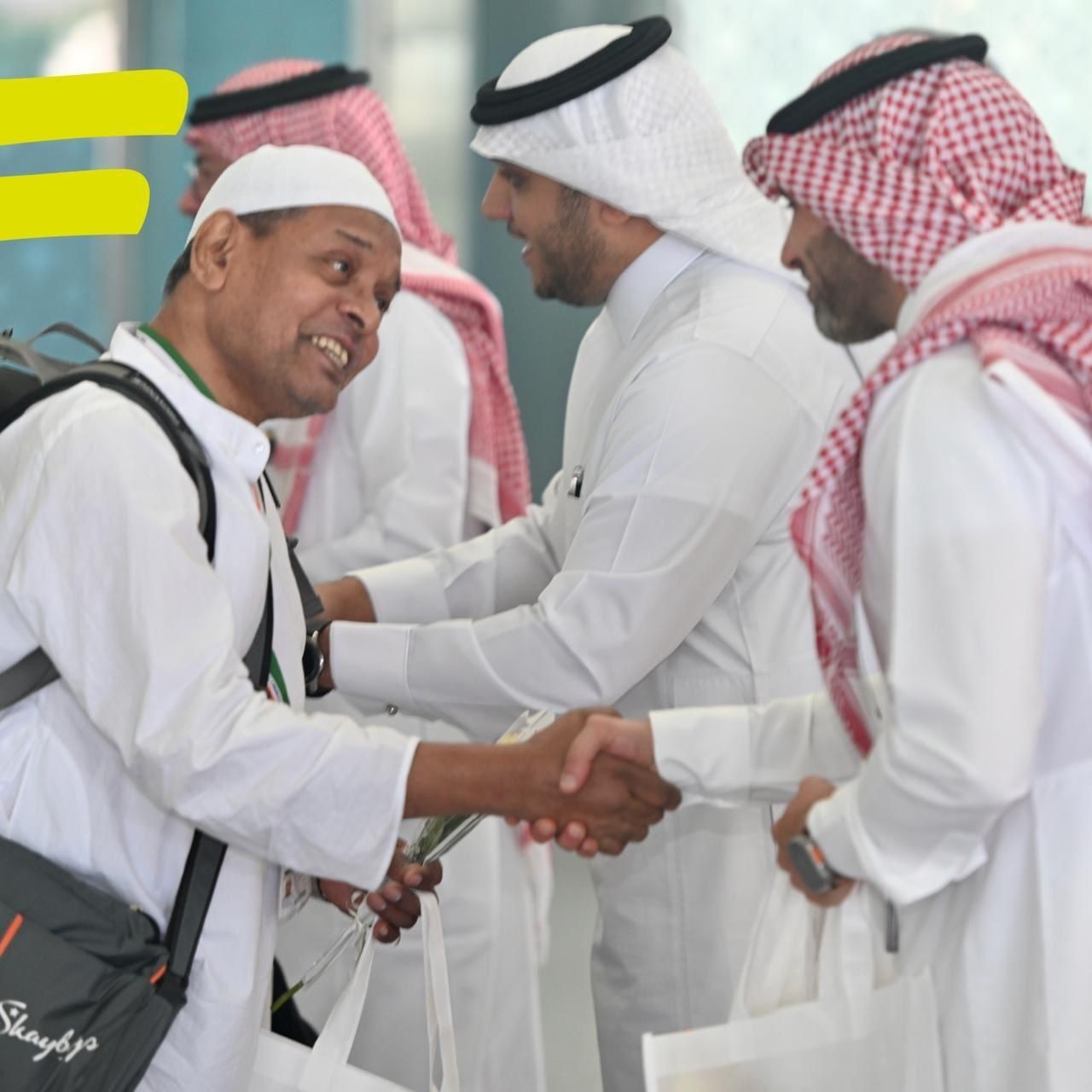 وكان في استقبال ضيوف الرحمن عدد من مسؤولي شركة "طيران أديل" وممثلين عن الهيئة العامة للطيران المدني، إلى جانب حضور عدد من مسؤولي القطاعات الحكومية والأهلية العاملة بالمطار، حيث قام الجميع فور وصول الحجاج إلى مدخل صالة القدوم بالترحيب بهم، وقدّموا لهم الهدايا التذكارية بهذه المناسبة، متمنين لهم إقامة سعيدة وحجًا مبرورًا في ظل ما يجده ضيوف الرحمن من رعاية كبيرة واهتمام بالغ من حكومة المملكة العربية السعودية.