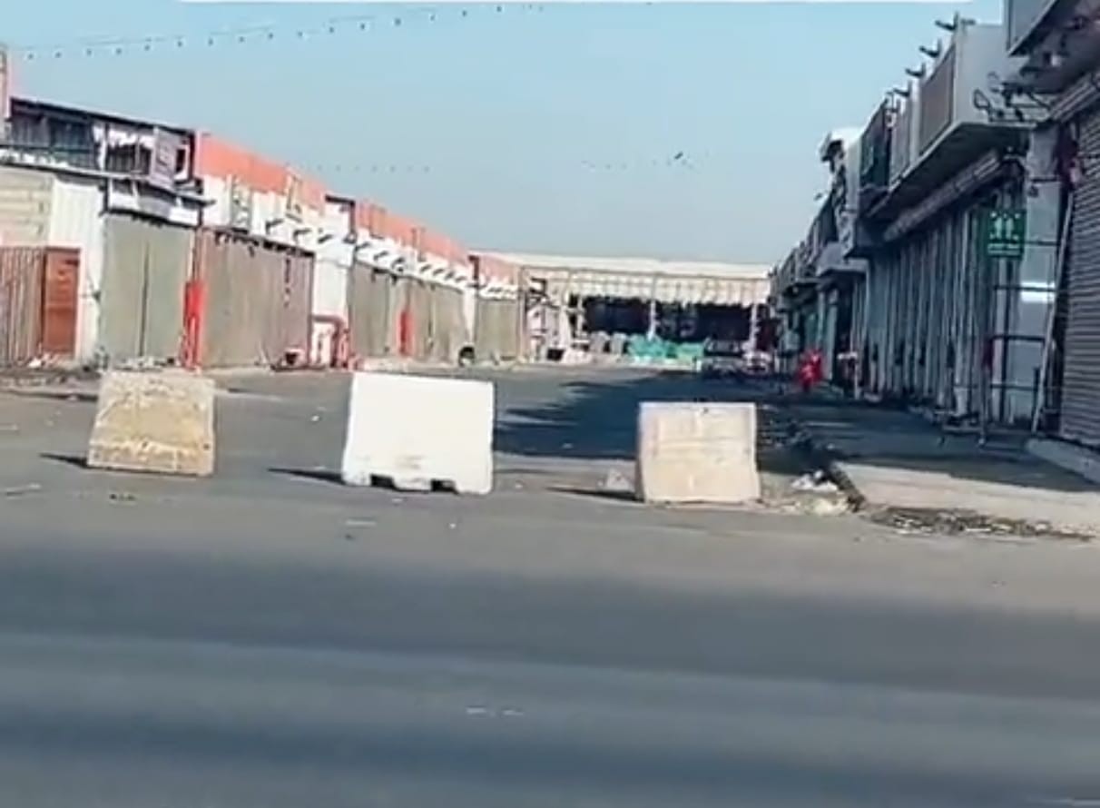 وانتشر مقطع فيديو على موقع التواصل الاجتماعي «تويتر»، أظهر اغلاق مداخل السوق، التي تحتوي على مئات المحال المتخصصة في مختلف أنواع البضائع خاصة المخفضة، باستخدام الصبات الخرسانية.