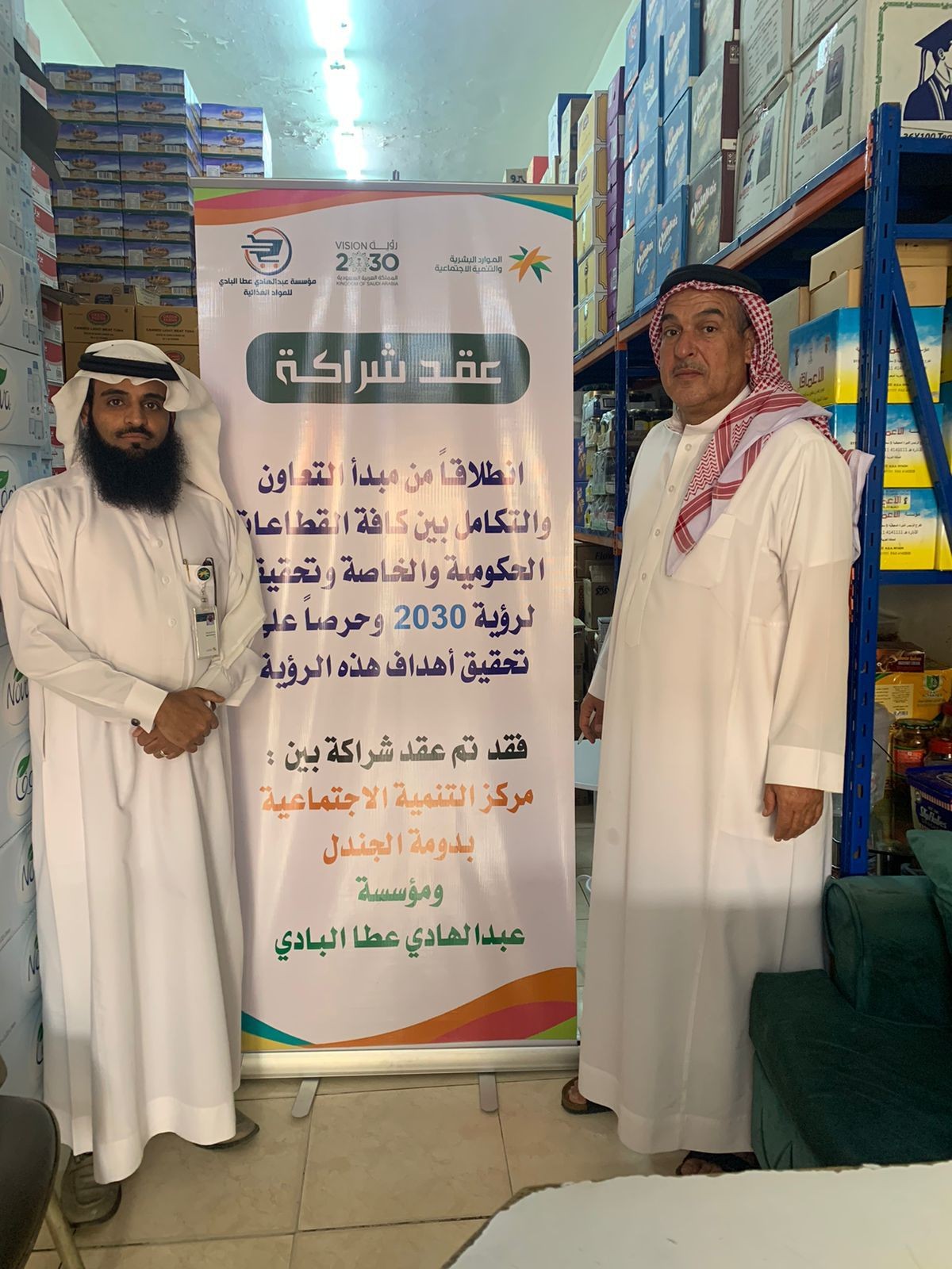 وقع مركز التنمية الاجتماعية بمحافظة دومة الجندل عقد شراكة مجتمعية مع مؤسسة عبدالهادي البادي للمواد الغذائية وتم التوقيع من قبل مدير المركز الأستاذ سعود سلمان الجباب ومثل المؤسسة المالك عبدالهادي عطا البادي.