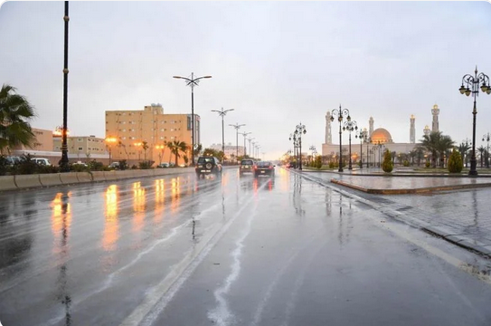 أمطار متوسطة إلى غزيرة وأتربة مثارة على منطقة تبوك