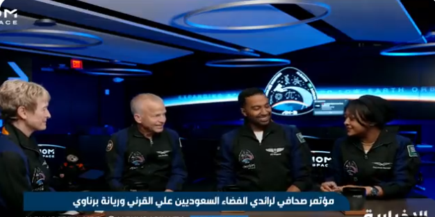 يعقد رائدا الفضاء السعوديان ريانة برناوي وعلي القرني، مؤتمرا صحفيا للكشف عن تفاصيل رحلتهما إلى محطة الفضاء الدولية.