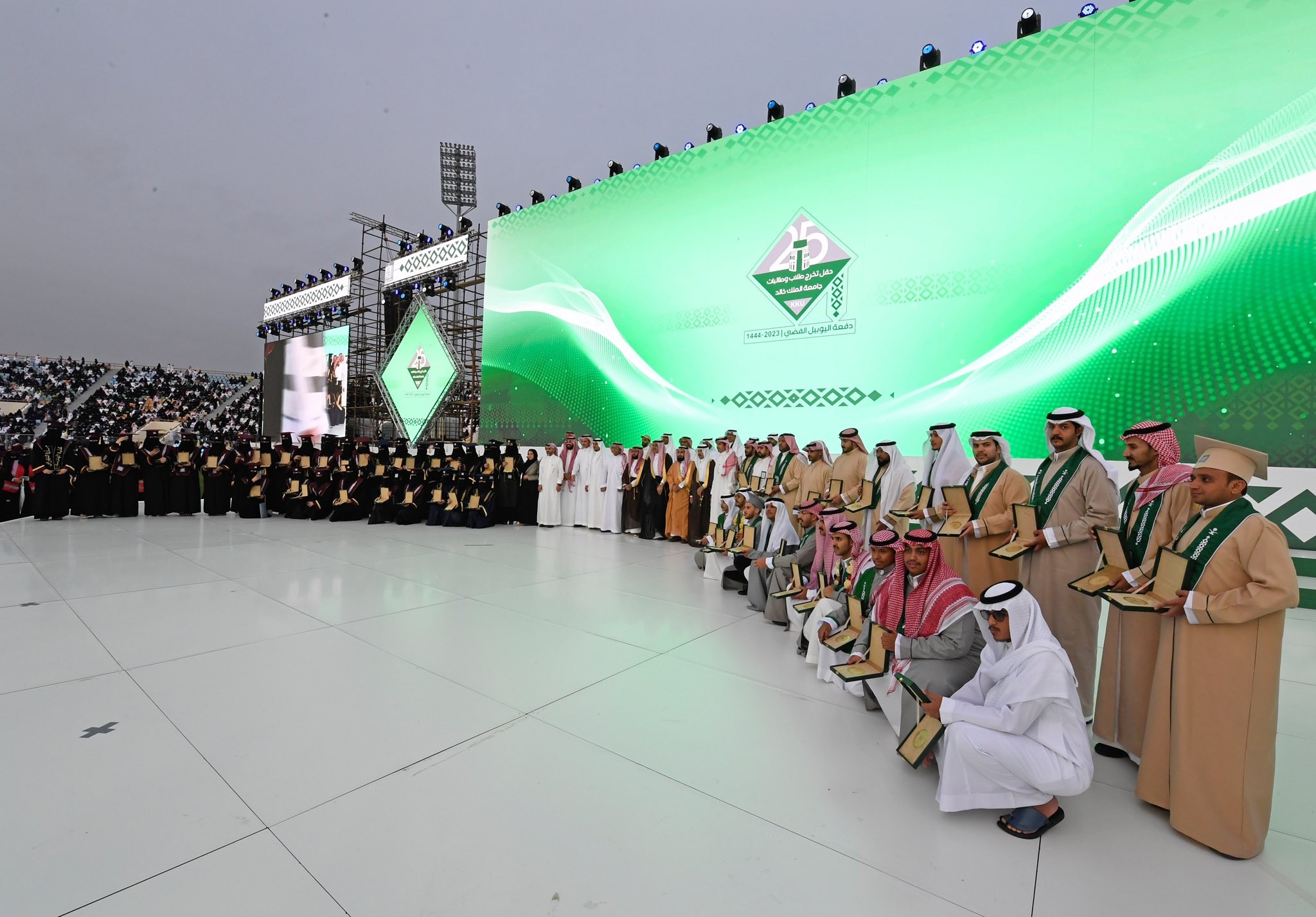رعى أمير منطقة عسير ورئيس هيئة تطويرها الأمير تركي بن طلال حفل تخرج الدفعة الـ 25 من طلاب وطالبات الجامعة للعام الجامعي 1444هـ - 2023م "دفعة اليوبيل الفضي" وأقيم الحفل بالملعب الرياضي بالمدينة الجامعية في الفرعاء