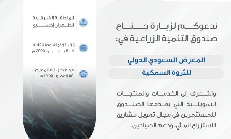 “صندوق التنمية الزراعية” يشارك في المعرض السعودي الدولي للثروة السمكية