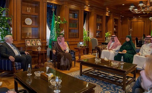 استقبل معالي وزير الدولة للشؤون الخارجية عضو مجلس الوزراء ومبعوث شؤون المناخ الأستاذ عادل بن أحمد الجبير، في الوزارة بالرياض اليوم، المبعوث الأمريكي السابق إلى سوريا السيد جويل ريبيرن.