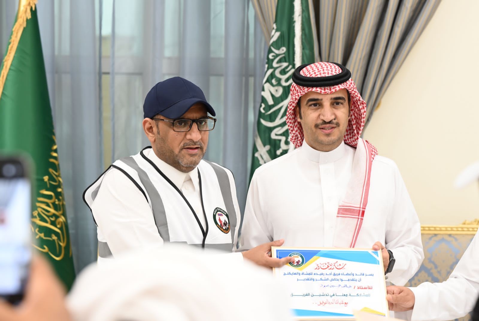 واختتم الحفل بتكريم عددٍ من الجهات الحكومية والداعمة لفريق أحد رفيدة للمشاة والهايكنج بدروع تذكارية.