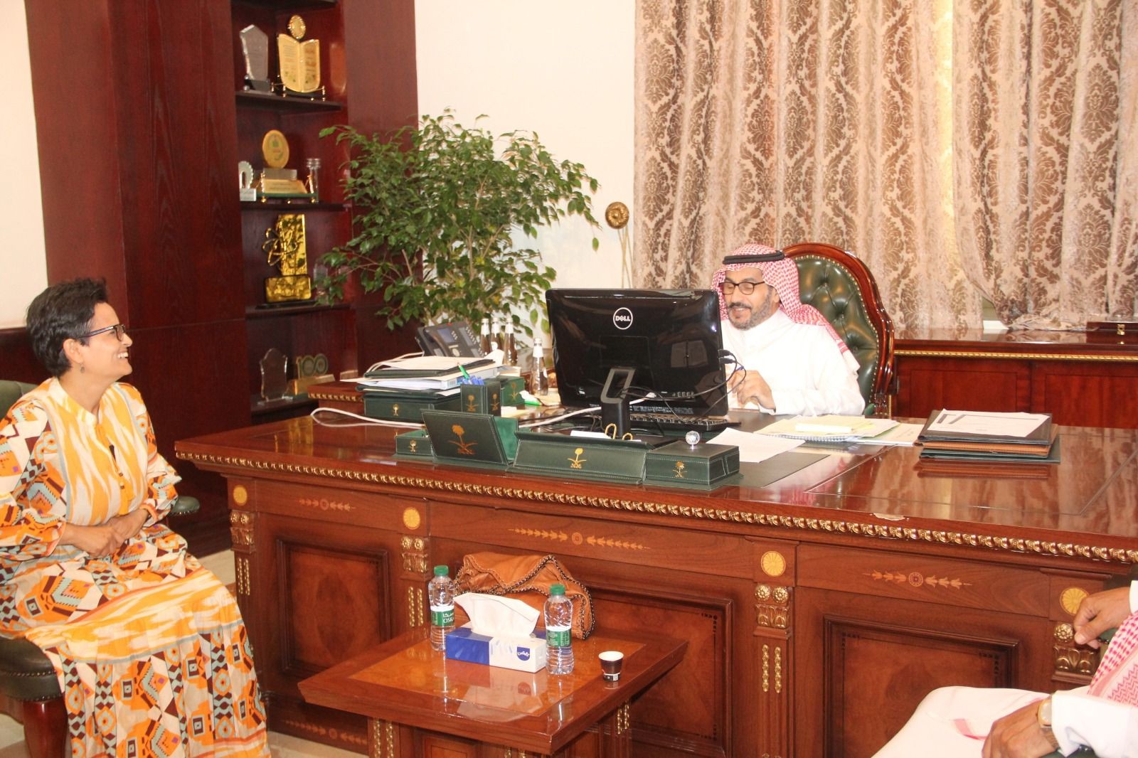 استقبل سعادة محافظ القريات عبدالله بن صالح الجاسر بمكتبه بعد ظهر اليوم الأحد الموافق 1444/11/22 هـ الدكتور مرزوق بن ملفي الخنجر والباحثة في معهد الزيتونة بالجمهورية التونسية الدكتورة مريم البشير.