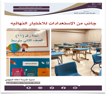 وتضمن البرنامج الاستعداد وضع لافتات إرشادية تحمل تعليمات عن الاختبارات وتم تجهيز لجان الاختبار النهائي وتهيئة البيئة المناسبة لأداء الاختبار ونشر التعليمات والنصائح التي تخص هذه الفترة والتغريد عنها في حساب المدرسة ونشر جداول المدرسة والتأكد من جاهزية البيئة الصفية ومتابعة دخول الطالبات للجان.