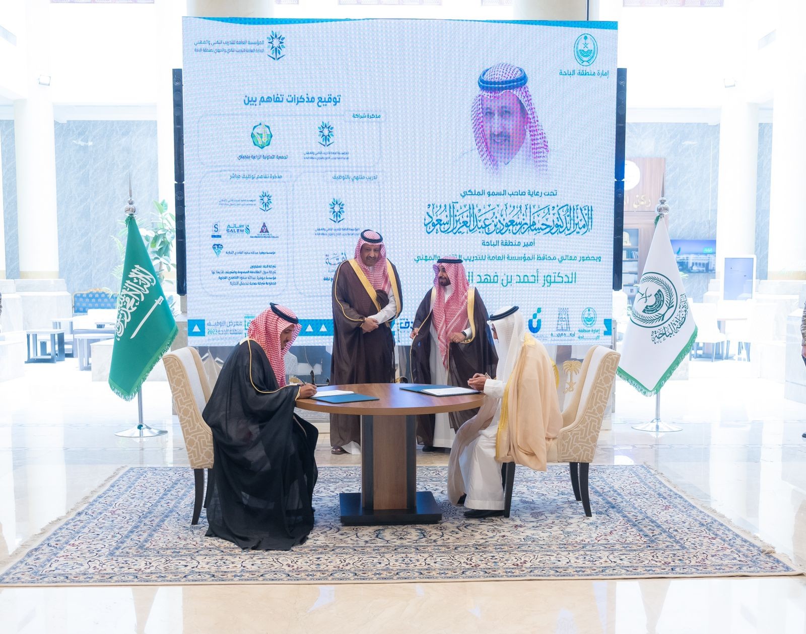 من جهة أخرى أوضح مدير عام التدريب التقني والمهني بمنطقة الباحة الاستاذ خالد بن ربيعان آل مشوط أن توقيع الاتفاقيات جرى بين منشآت الإدارة العامة للتدريب التقني والمهني بالباحة وجهات عدة منها؛ شركة مصنع لفتة ، والجمعية التعاونية الزراعية ببلجرشي، وشركة اتحاد المقاولين ، ومجموعة شركة نمذجة للأعمال التجارية ، مؤكدا سعادته أن هذه الاتفاقيات تعزز التكامل بين هذه الإدارات الحكومية والأهلية وتسهم في تأهيل وتوظيف الكوادر الوطنية في سوق العمل منوهاً بدعم القيادة الحكيمة لهذه البرامج.