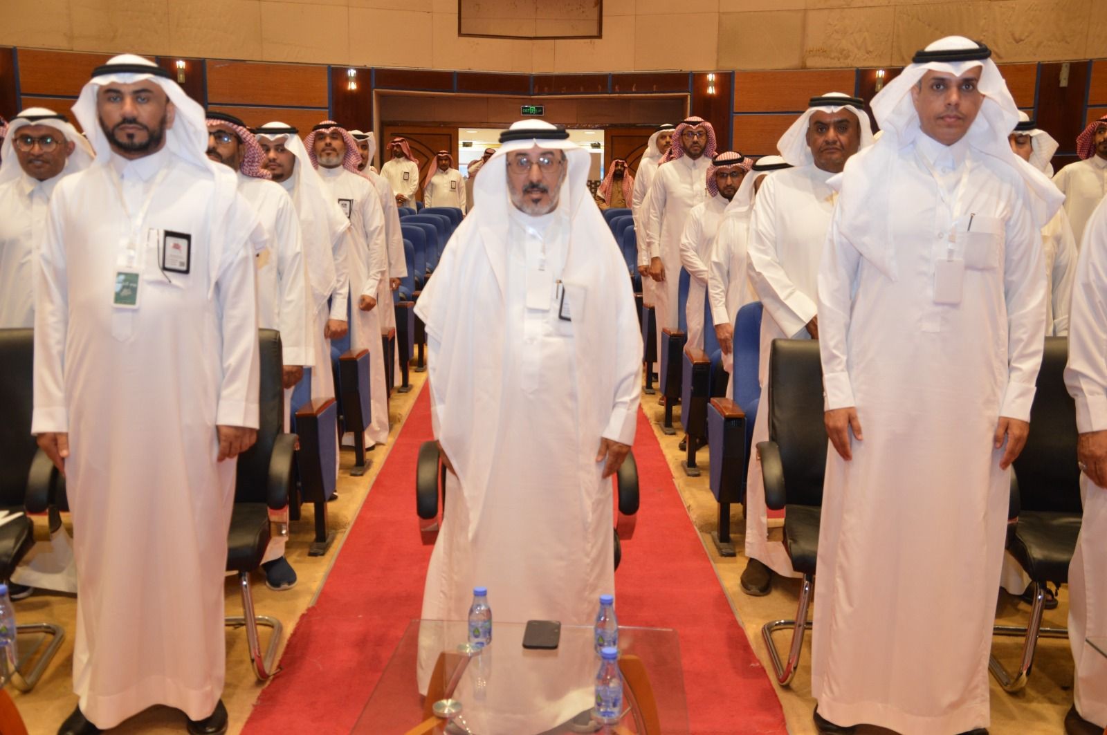 بداية بالنشيد الوطني والقرآن الكريم ثم كلمة المحتفى بهم ألقاها نيابة عنهم الأستاذ علي  سعد الأحمري قدم فيها شكره للقائمين على هذا الحفل وللحضور ولعائلته الكريمة التي حرصت على التواجد بهذا المناسبة الغالية،