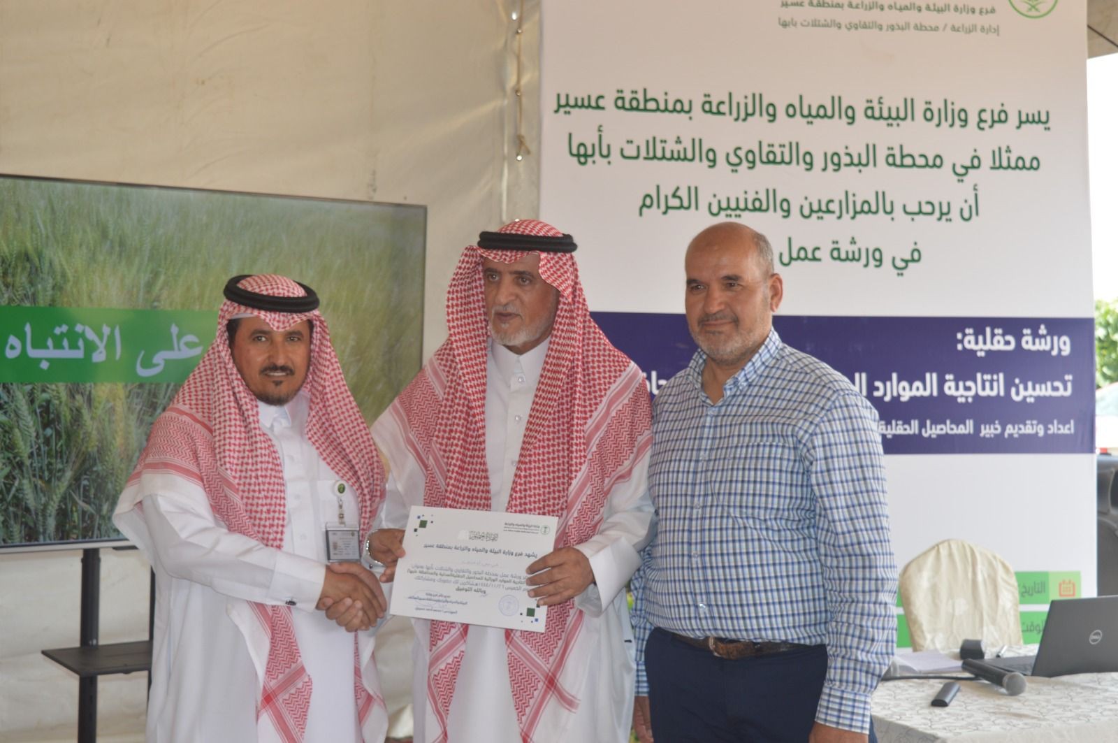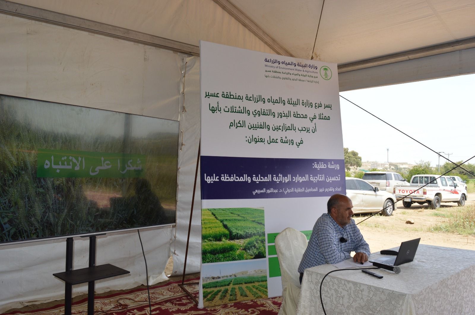 اقام فرع وزارة البيئة والمياه والزراعة بمنطقة عسير ممثلا في محطة البذور والتقاوي والشتلات بأبها ورشة عمل علمية حقلية بعنوان "تحسين انتاج الموارد الوراثية للمحاصيل الحقلية المحلية والمحافظة عليها" حضرها عدد من المزارعين والمهتمين في المنطقة، ودشن مدير إدارة الزراعة بفرع عسير المهندس علي سيف الورشة نيابة عن مدير عام الفرع المكلف محمد احمد عسيري رحب فيها بالحضور وتمنى لهم التوفيق، ثم قدم خبير المحاصيل الحقلية الدولي الدكتور عبدالنور السبيعي محاضرة تحدث فيها عن التجربة الحقلية التي تمت في محطة البذور والتقاوي بأبها وعن الممكنات والعوائق وكيفية التغلب عليها.
