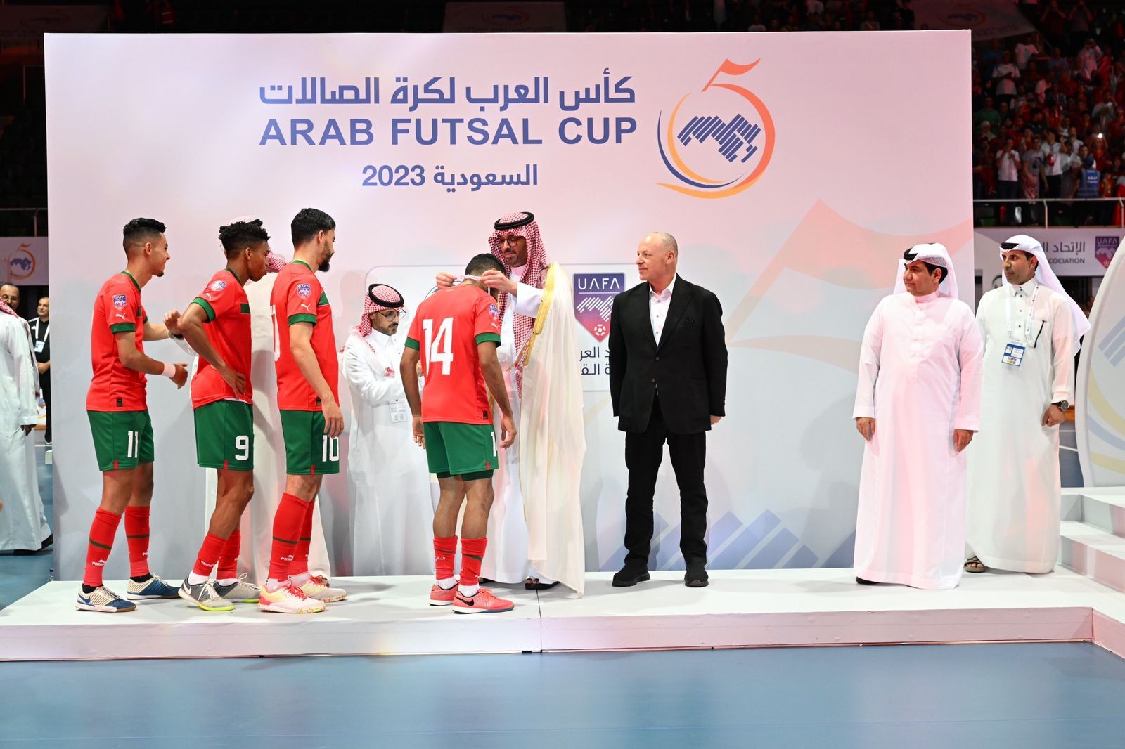 نيابةً عن صاحب السمو الملكي الأمير خالد بن فيصل بن عبدالعزيز، مستشار خادم الحرمين الشريفين، أمير منطقة مكة المكرمة، توّج صاحب السمو الأمير سعود بن عبدالله بن جلوي محافظ جدة اليوم، منتخب المغرب بكأس بطولة العرب لكرة قدم الصالات 2023 في نسختها السابعة، بعد فوزه في المباراة النهائية على منتخب الكويت بنتيجة 7-1 في اللقاء الذي جمعهما على صالة وزارة الرياضة بجدة.
