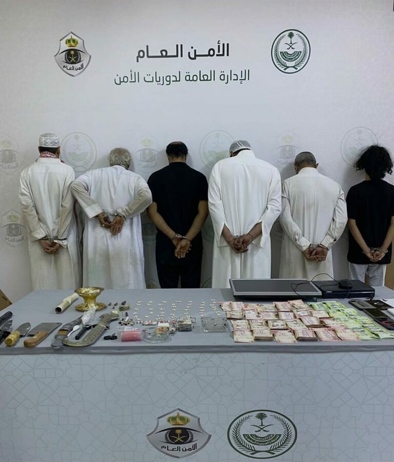القبض على 6 أشخاص اتخذوا منزلًا مزودًا بكاميرات مراقبة وكرًا لترويج المخدرات في تبوك