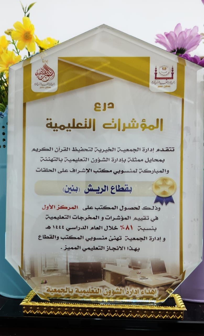 فاز مكتب الاشراف على حلقات تحفيظ القران الكريم في الريش بالمركز الاول في مؤشر الاداء التعليمي والإداري لعام 1444هـ