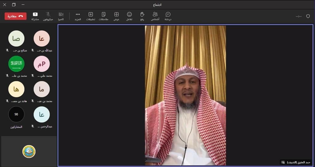 نظمت وحدة الأمن الفكري بالرئاسة العامة لهيئة الأمر بالمعروف والنهي عن المنكر لقاءً علمياً حضره منسوبو فرع الرئاسة العامة بمنطقة الباحة من إداريين وميدانيين، بعنوان "الجماعات الإرهابية واستغلالها للمؤثرات العقلية وأثرها على المجتمع"، ألقاه فضيلة الشيخ حمد بن عبدالعزيز العتيق، عبر الاتصال المرئي.