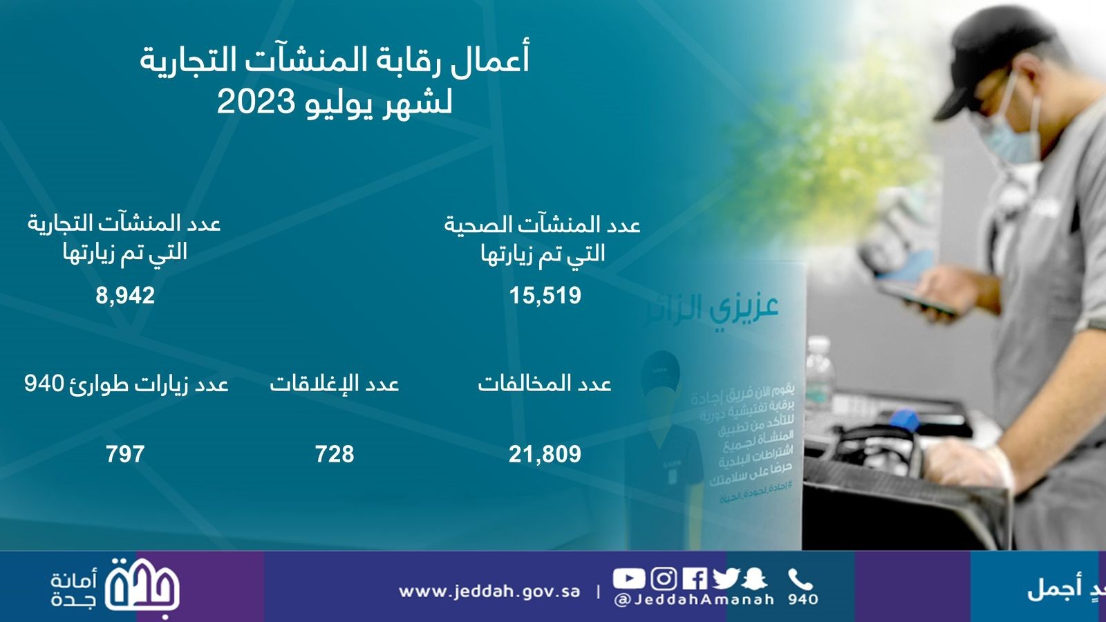 نفذت أمانة محافظة جدة خلال شهر يوليو الماضي أكثر من 24  ألف جولة رقابية، على المنشآت التجارية والصحية في نطاق 16 بلدية فرعية.