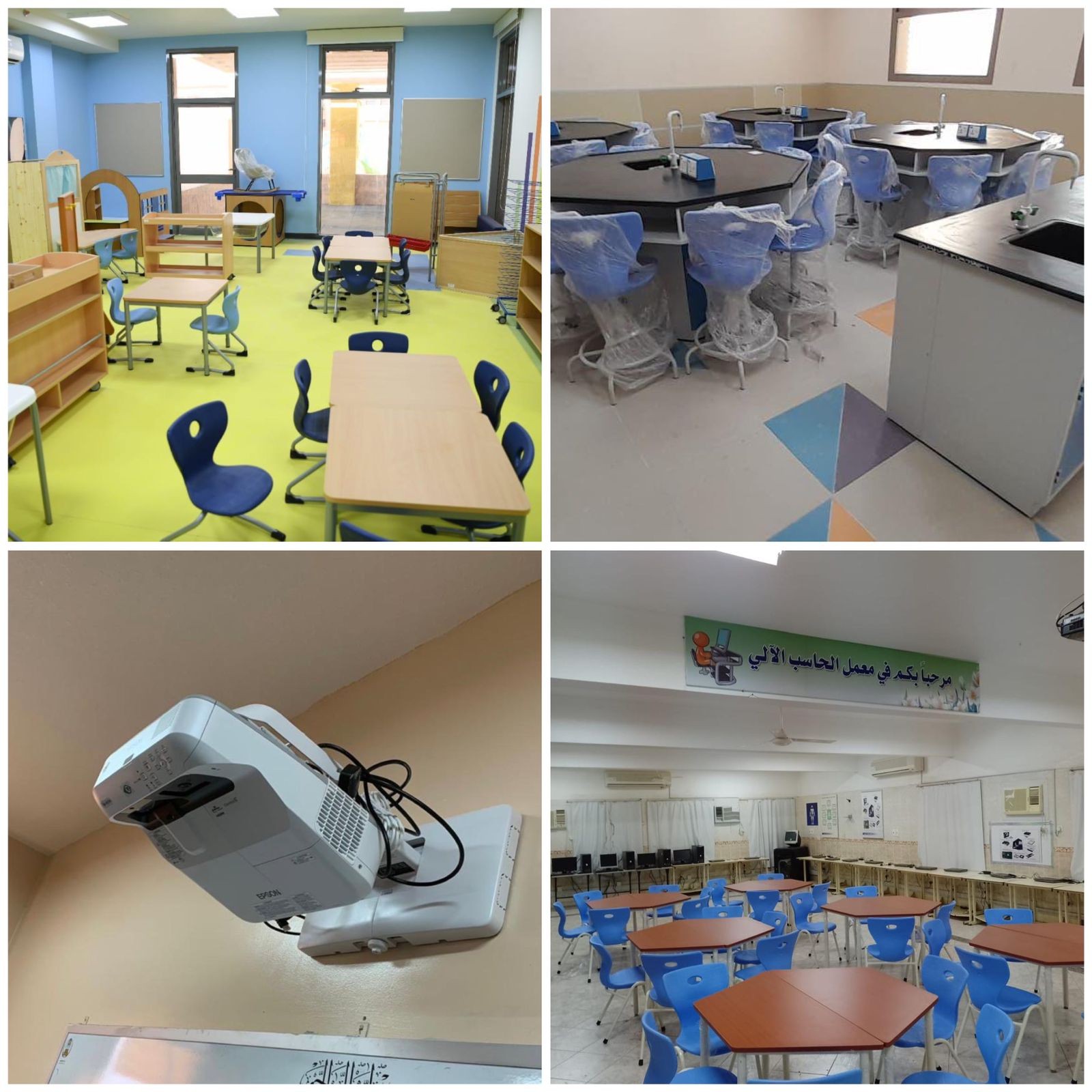 وتأمين سبورات بورسلان حائطية لعدد 350 حجرة دراسية جديدة والمعامل والمختبرات المدرسية ، وتوفير المواد الكيميائية لدعم المناهج الدراسية ودعم التجارب المعملية لعدد 172 مدرسة بمختلف المراحل، وتأمين المستلزمات التعليمية لعدد 90 مركز مصادر تعلم بمدارس البنين والبنات وكذلك توفير مستلزمات معامل ومختبرات مسار الصحة والحياة، وتأمين عدد 49 آلة تصوير جديدة، وتأمين العلم السعودي بفئاته الثلاث ( السارية – مكتبي- للمباني المدرسية ) لعدد 1152 مدرسة للبنين والبنات، وصيانة عدد 480 داتا شو لعدد 1201 مدرسة بنين بنات و صيانة عدد ( 102 ) مختبرات مدرسية لعدد 102  مدرسة، وصيانة لمبات البروجكترات والسبورات التفاعلية لعدد 72 مدرسة.