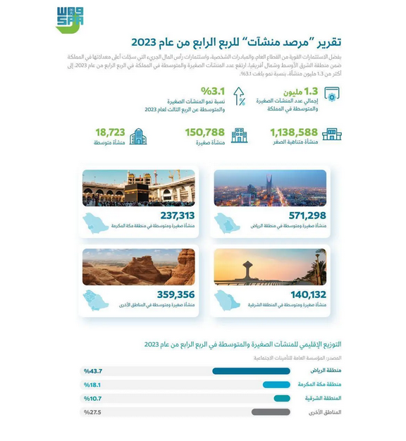 بزيادة 3.1% .. منشآت تعلن 1.3 مليون منشأة صغيرة ومتوسطة في #المملكة