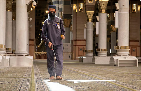 وتشمل أعمال الرعاية اليومية غسل أرضيات المسجد النبوي وساحاته وسطحه أكثر من مرة يوميًا، بالإضافة إلى تنظيف وتعقيم أكثر من (25,000) سجادة يوميًا، وتعطير الأرضيات والسجاد بأجود أنواع الورد المديني، فضلًا عن تعقيم وتطهير مرافق المسجد ودورات المياه بشكل دوري.