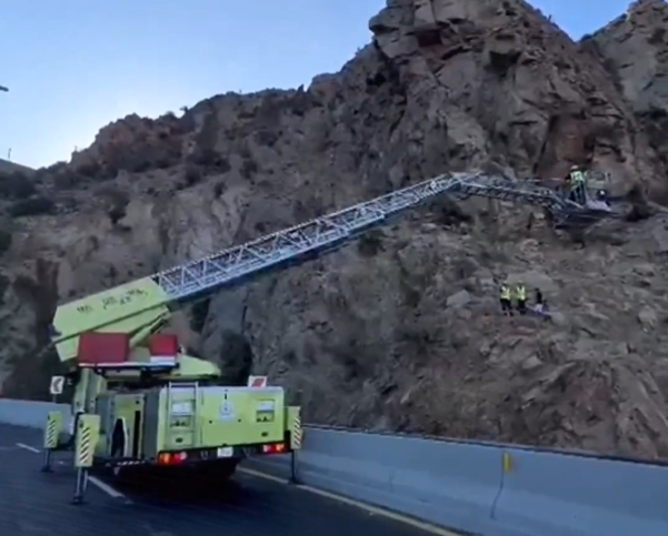الدفاع المدني بالطائف ينقذ 4 محتجزين بمرتفع جبلي في الهدا