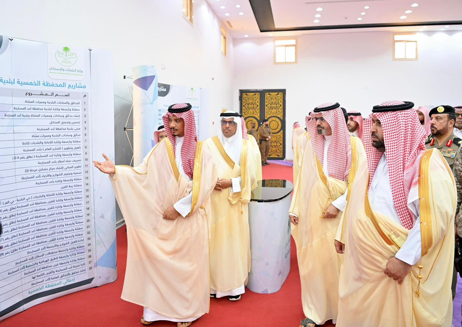 وتابع سموهما عرضًا عن أبرز المشروعات البلدية المنفذة بالمحافظة والمراكز التابعة لها، منها (30) مشروعًا منجزًا، بتكلفة بلغت (242) مليون ريال، وهي (29) مشروعًا بلديًا شملت مشروعات السفلتة والطرق والنظافة وتشغيل المدينة، والبُنى التحتية، ومشروع إسكاني في "أبوحجر"، يشمل (146) وحدة سكنية.