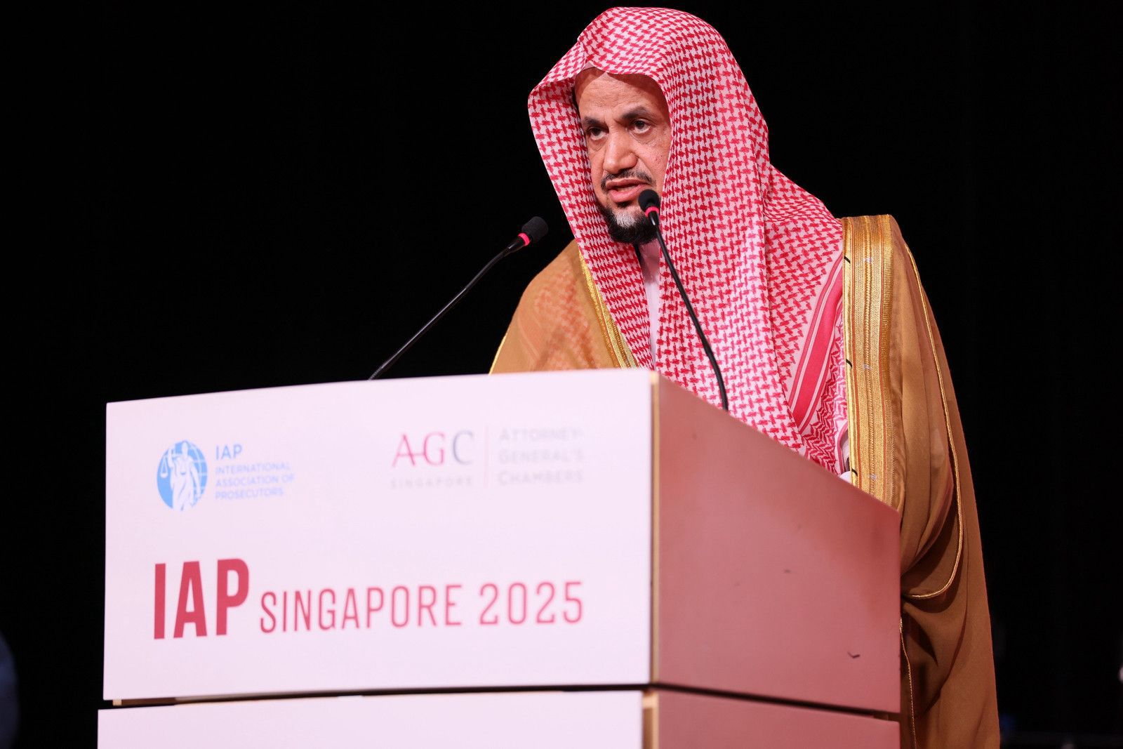 تسلّم معالي النائب العام الشيخ سعود بن عبدالله المعجب علم الاستضافة للدورة الحادية والثلاثين من مؤتمر الرابطة الدولية للمدعين العامين لعام 2026م، من معالي النائب العام لجمهورية سنغافورة السيد لوسيان وونغ، وذلك على هامش أعمال المؤتمر الثلاثين المنعقد في سنغافورة.