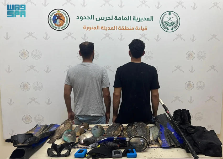 ضبطت الدوريات الساحلية لحرس الحدود في ينبع بمنطقة المدينة المنورة، مواطنين مخالفين للائحة الأمن والسلامة لمزاولي الأنشطة البحرية في المناطق البحرية للمملكة العربية السعودية، وذلك لممارستهم الصيد دون تصريح، وبحوزتهم أسماك مصيدة، واتخذت الإجراءات النظامية بحقهم بالتنسيق مع الجهات المختصة.
