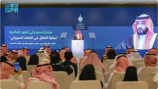 وفي قطاع الأمن السيبراني أكد معاليه أن المملكة كما تحمي حدودها الجغرافية بكل حزم، فإنها تحفظ سيادتها على القيم والهوية، حيث اعتمد مجلس حقوق الإنسان بالأمم المتحدة بالإجماع مبادرة سمو ولي العهد العالمية (حماية الطفل في الفضاء السيبراني)، تأكيدًا على التزام المملكة بفضاء رقمي آمن وهوية قيمية مصونة، وللمرة الثانية على التوالي، حققت المملكة المركز الأول عالميًا في مؤشر الأمن السيبراني، وفق تقرير التنافسية العالمية لعام 2025م.