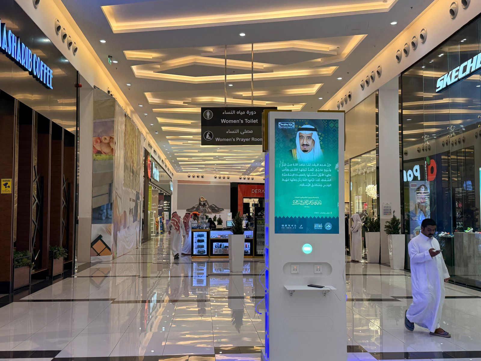 وتتميز المنصة التوعوية الذكية بعرض رسائل توعوية وإرشادية مرئية ومتنوعة تخاطب مختلف فئات المجتمع، إضافةً إلى كونها مزودة بخدمة الشواحن اللاسلكية والسلكية التي تُمكّن الزوار من شحن أجهزتهم الذكية أثناء تسوقهم، في بادرة تهدف إلى الجمع بين الفائدة التوعوية والخدمة المجتمعية.