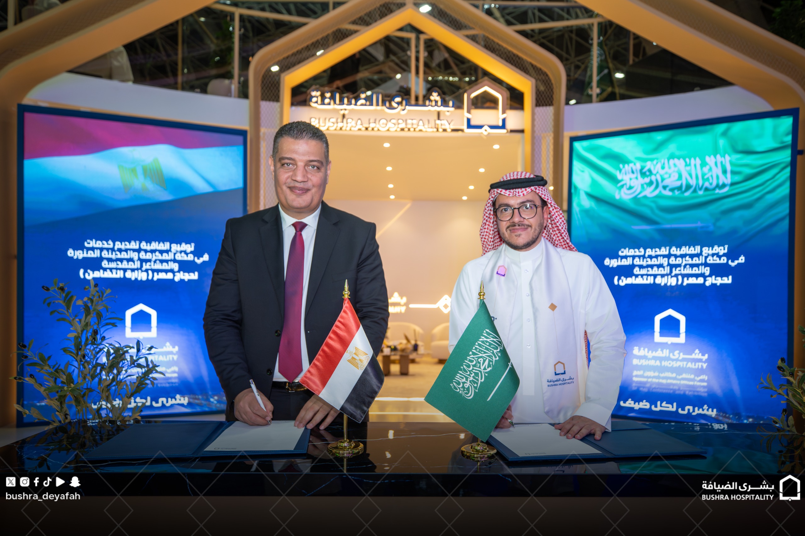 أبرمت شركة بشرى الضيافة؛ إحدى الشركات الرائدة في مجال تقديم خدمات الحج والعمرة في المملكة، عقدًا مع المؤسسة القومية لتيسير الحج والعمرة في جمهورية مصر العربية (وزارة التضامن)، وذلك على هامش مؤتمر ومعرض الحج والعمرة 2025 المنعقد في جدة.