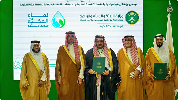 برعاية الأمير سعود بن مشعل بن عبدالعزيز، نائب أمير منطقة مكة المكرمة، شهد الأمير سعود بن عبدالله بن جلوي، محافظ جدة، توقيع مذكرة تعاون بين جمعية نماء المكية للسقاية والرفادة بمنطقة مكة المكرمة، وفرع وزارة البيئة والمياه والزراعة بمنطقة مكة المكرمة، وذلك على هامش معرض جدة الدولي للمنتجات الغذائية ومهرجان "خيرات مكة"، الذي نظمه فرع الوزارة بمركز جدة للمعارض والفعاليات.