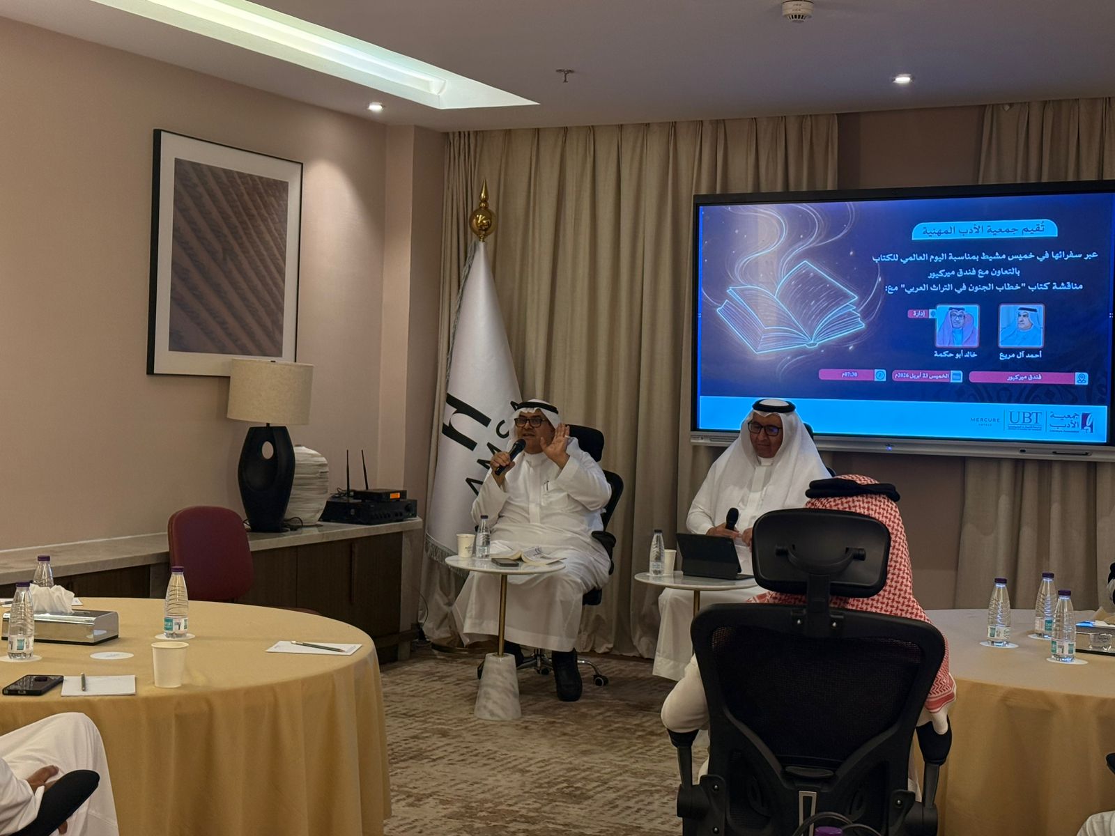 وجاءت الأمسية لمناقشة كتاب “خطاب الجنون في التراث العربي”، حيث استضافت د. أحمد آل مريع، فيما أدار الحوار د. خالد أبو حكمة، في أجواء حوارية ثرية اتسمت بالتفاعل وتبادل الآراء.
