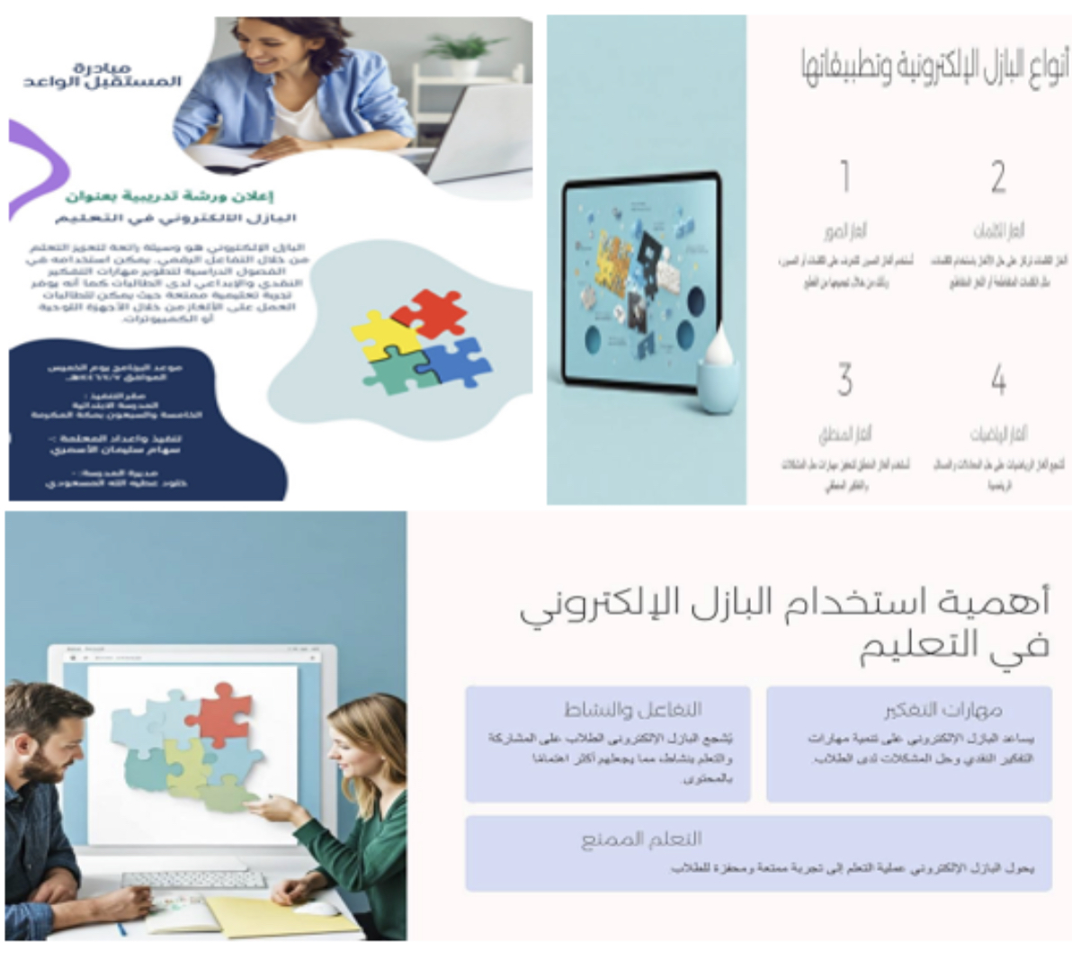 نفذت الابتدائية الخامسة والسبعون التابعة لمكتب تعليم العوالي بالإدارة العامة للتعليم بمكة يوم الخميس ٧/4/1446هـ ورشة تدريبية بعنوان (استخدام البازل الإلكتروني في التعليم)، نفذتها المعلمة سهام الأسمري بإشراف مديرة المدرسة خلود المسعودي، وبحضور معلمات المدرسة ، وذلك بهدف تعزيز الكفاءة التقنية بتزويد المعلمات بالمعرفة والمهارات اللازمة لاستخدام التكنولوجيا في التعليم ،وتحسين الأداء الأكاديمي للطالبات من خلال تطبيق استراتيجيات تدريس فعالة.