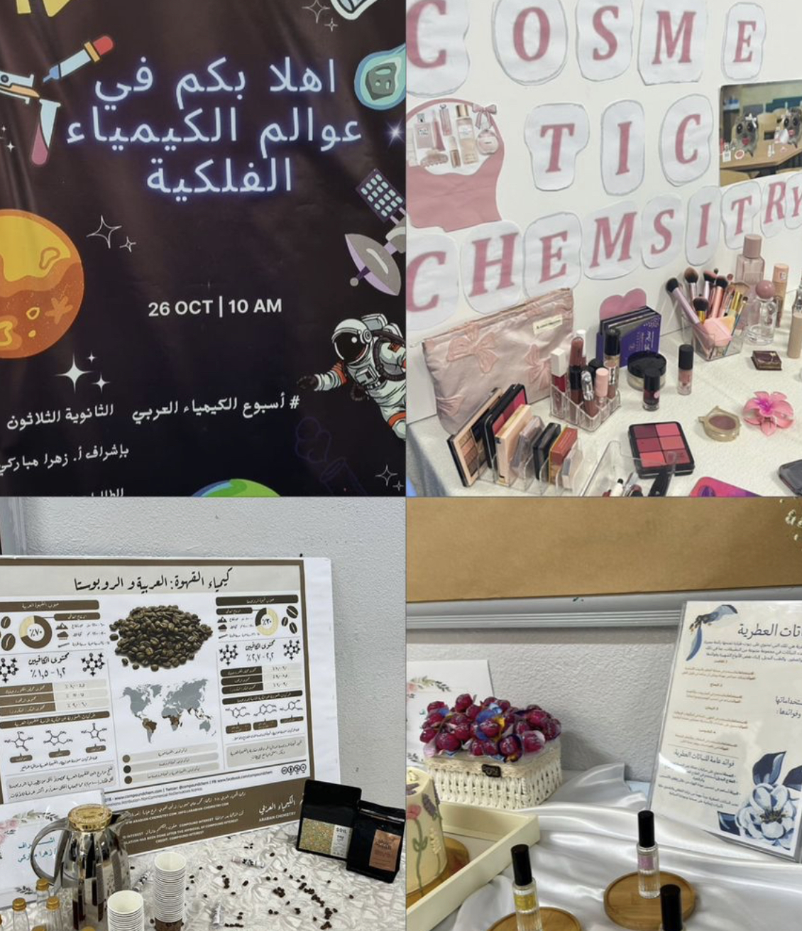 فعلت الثانوية الثلاثون التابعة لمكتب تعليم العوالي بالإدارة العامة للتعليم بمكة المكرمة يوم الأربعاء 20/ 4/ 1446هـ " أسبوع الكيمياء العربي " ، نفذته معلمات مادة الكيمياء ، ورائدة النشاط عبر الإذاعة المدرسية، حيث تم تقديم مشاريع وأبحاث علمية أثرت المعلومات لدى الطالبات والمنسوبات في المدرسة ، وبإشراف مديرة المدرسة محاسن أفندي، وذلك يأتي ضمن تنمية مهارات الطلبة العلمية التي تسهم في رفع نواتج التعلم ، وإبراز جوانب الإبداع لديهم في مجال الكيمياء ، وتنمية مهارات البحث العلمي مجال الكيمياء لدى الطلاب ، ومهارات عرض البحوث والتجارب العلمية ، وإثراء الجانب المعرفي والمهارية في جانب الكيمياء ، وتعزيز دور الكيمياء في التعليم والتعلم .