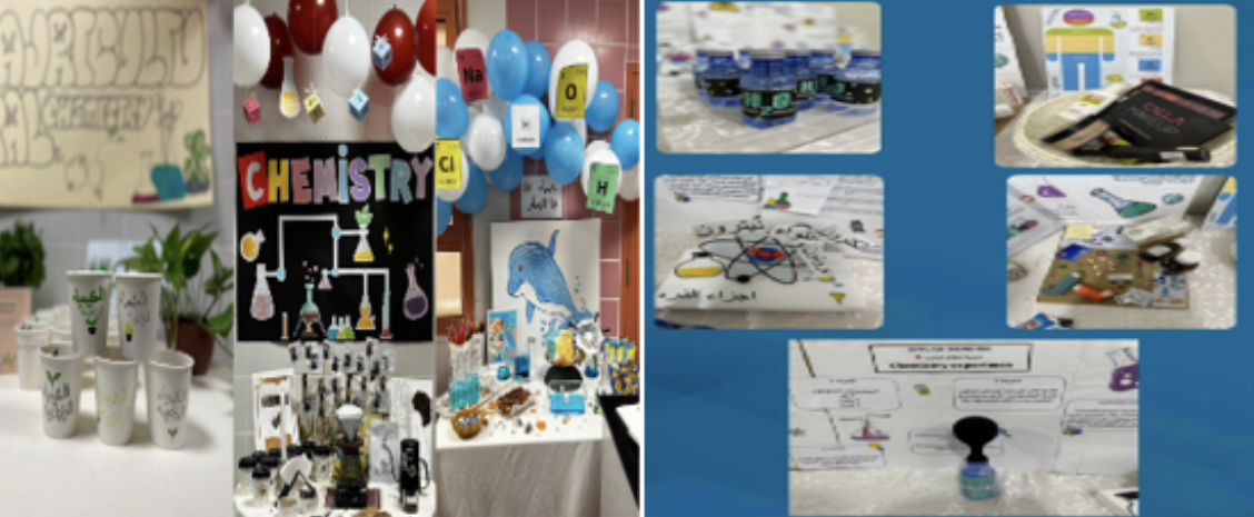 حيث فعلت الثانوية الخامسة من يوم الاحد 17/ 4 حتى يوم الأربعاء 20/04/1446هـ الأسبوع العربي للكيمياء ،نفذته رائدة النشاط ومعلمات مادة العلوم بإشراف مديرة المدرسة نجلاء فلاتة من خلال إذاعة مدرسية، وتم توزيع مطويات تثقيفية والتفاعل مع الطالبات ،وتحفيزهم للمشاركة في عرض البحوث والتجارب العلمية ،وإقامة معرض يضم أعمال الطالبات .
