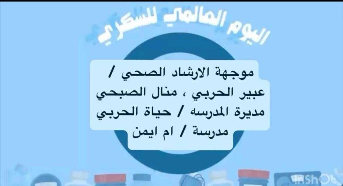 نفذت ابتدائية أم أيمن التابعة لمكتب تعليم التنعيم بالإدارة العامة للتعليم بمنطقة مكة المكرمة برنامج "اليوم العالمي للسكري " يوم الخميس الموافق 19/5/1446هـ، نفذته الموجهة الصحية عبير الحازمي ومنال عبيد الله بإشراف مديرة المدرسة حياة الحربي بهدف زيادة الوعي والتحذير من مرض السكري الوقاية من الأمراض ،ودعم ونشر المبادرة الوطنية والعالمية لمكافحة مرض السكري ومضاعفاته ، وتعزيز العمل للحد من عوامل الخطر لمرضى السكري.