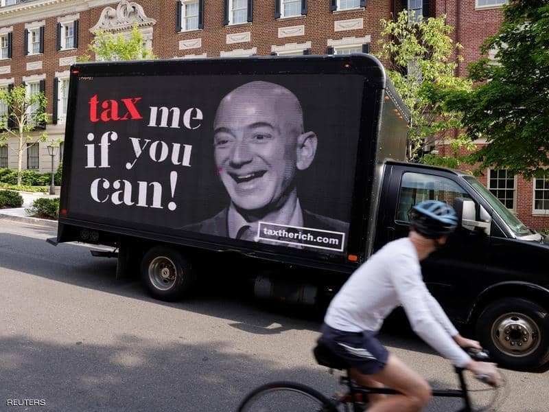 ورغم أن بيزوس قال إنه يدعم رفع معدل الضريبة على الشركات، إلا إن شركة أمازون كانت منذ فترة طويلة موضع احتجاجات بشأن التهرب الضريبي.