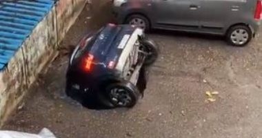 حفرة تبتلع سيارة بالكامل فى مدينة مومباى الهندية بسبب الأمطار