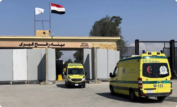 دخول 7 شاحنات وقود غزة ووصول 17 سيارة إسعاف إلى الجانب المصري من معبر رفح