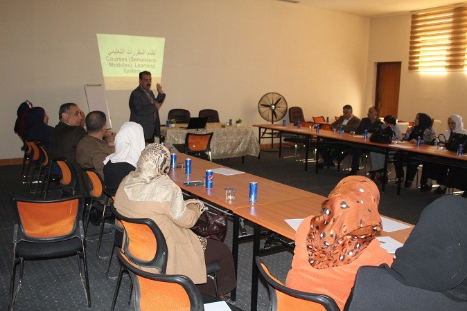 حيث تضمنت الورشة مناقشة السبل الكفيلة لتطبيق نظام المقررات الدراسية إنطلاقاً من العام الدراسي المقبل 2019-2020 وضرورة تكثيف العمل في جميع الفروع العلمية والسعي لتوفير جميع المستلزمات الضروربة لتطبيق نظام المقررات الدراسية تماشياً مع البرنامج الحكومي الخاص بالتعليم العالي وقرارات الوزارة في هذا الصدد والتأكيد إلى أهمية إقامة الندوات والورش والمحاضرات التثقيفية وتدريب التدريسيين وتطوير مهاراتهم في التعامل مع هذا النظام لضمان نجاحه .